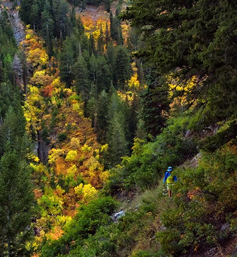I went for a hike with Mark, g and Murphy the energetic dog. Started at Tibble Fork, ascending the Deer Creek trail to the sumit of Box Elder and descended the south ridge, continuing down the big east facing gully. There's no trail down that.