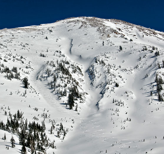 1-3" of new snow over a mostly crusted base. The old surface was well frozen at all elevations and on all aspects. Winds prior to and during the little storm scoured windward aspects leaving a dirt and rock base in some locations.