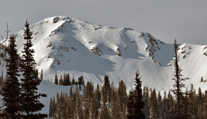 One large slide into old snow layering on Timpanogos(Timpanogos basin) was viewed from Red Baldy.